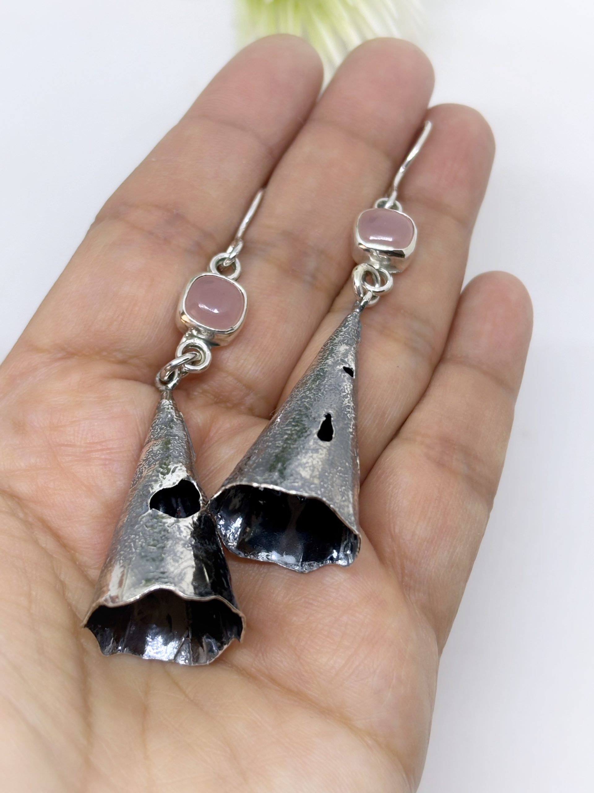 Maxi aros plata 950 reticulada envejecida y calcedonias rosa, piezas únicas, piedras engastadas no pegadas ojoooo 🥰🥰🥰.