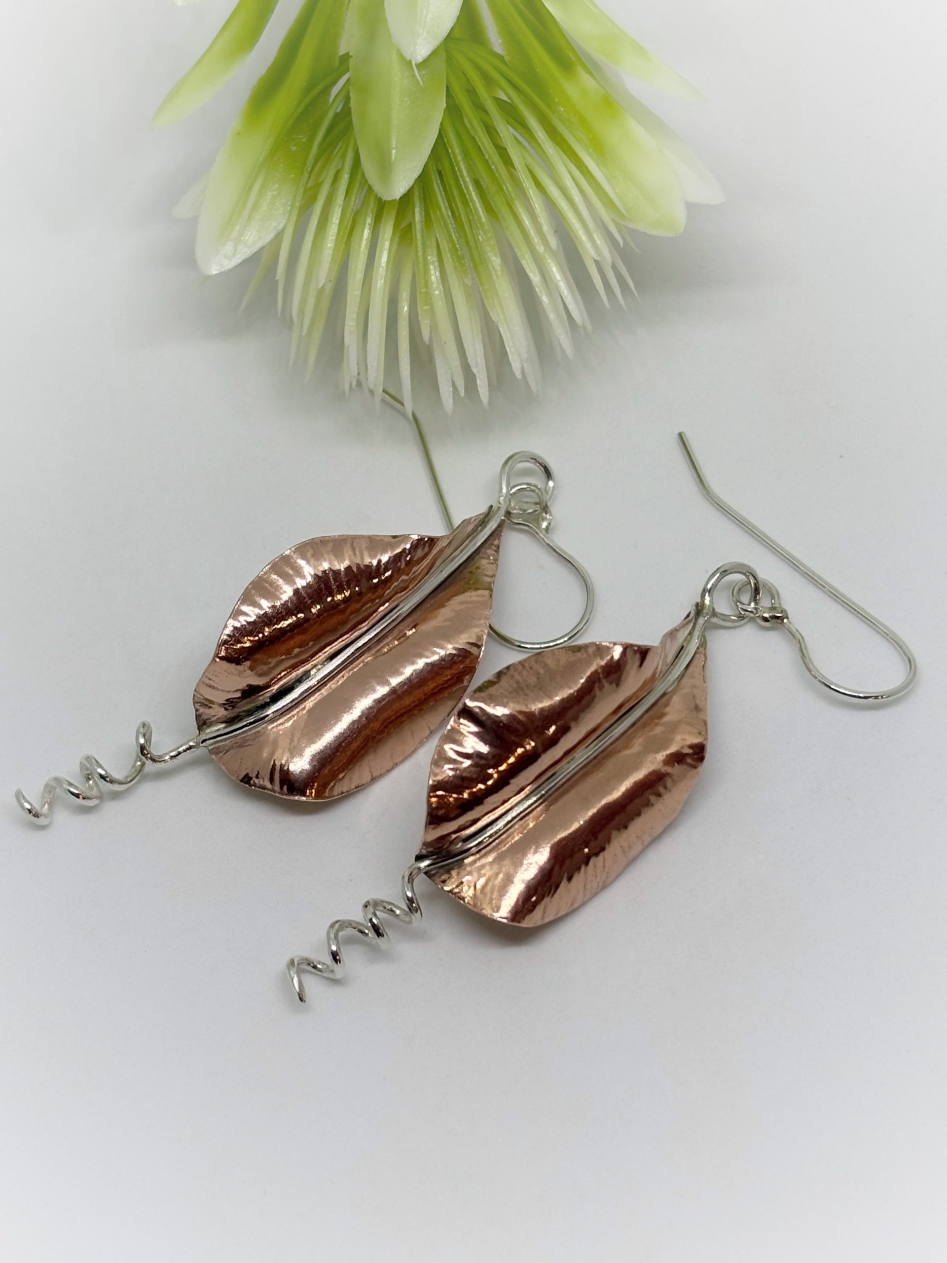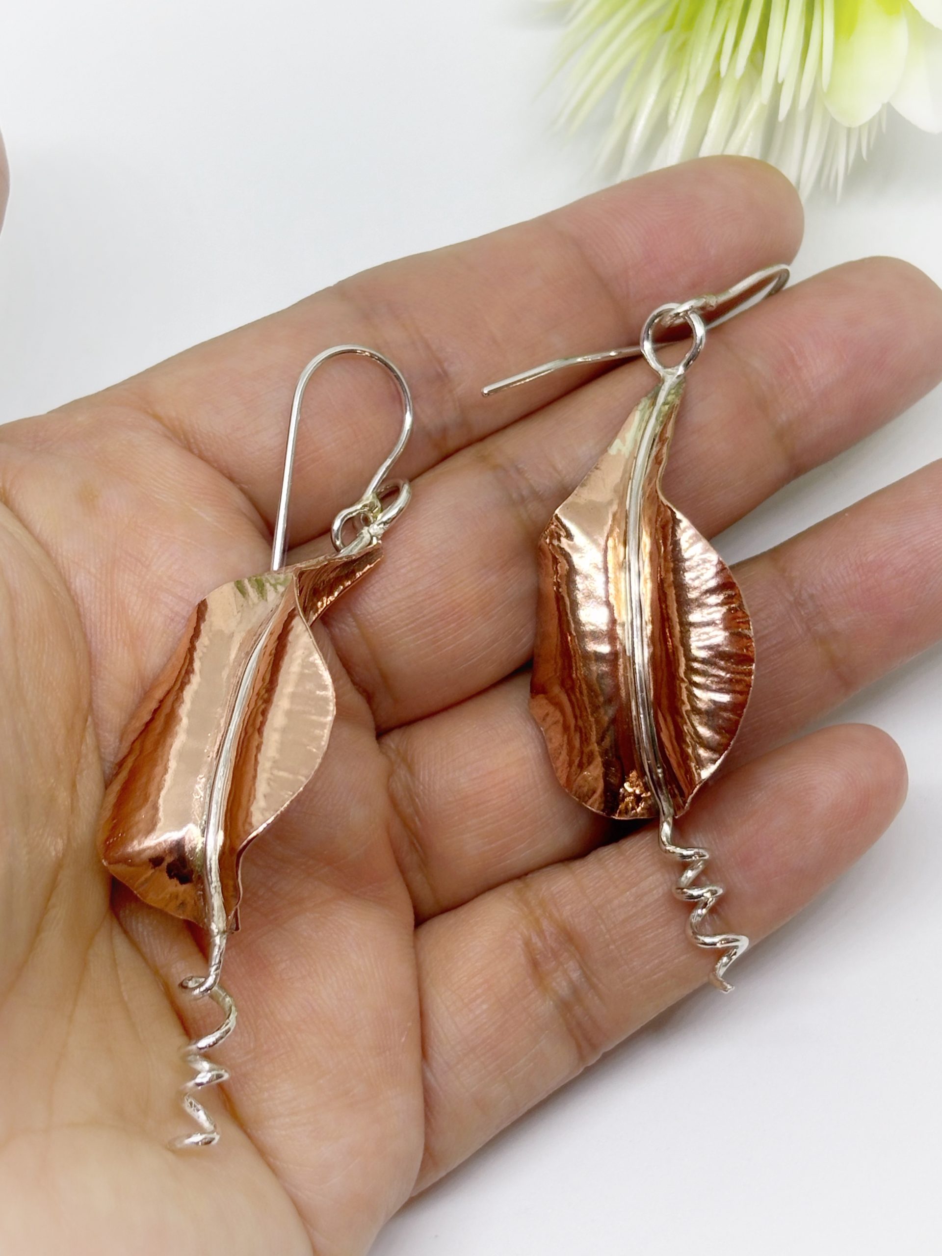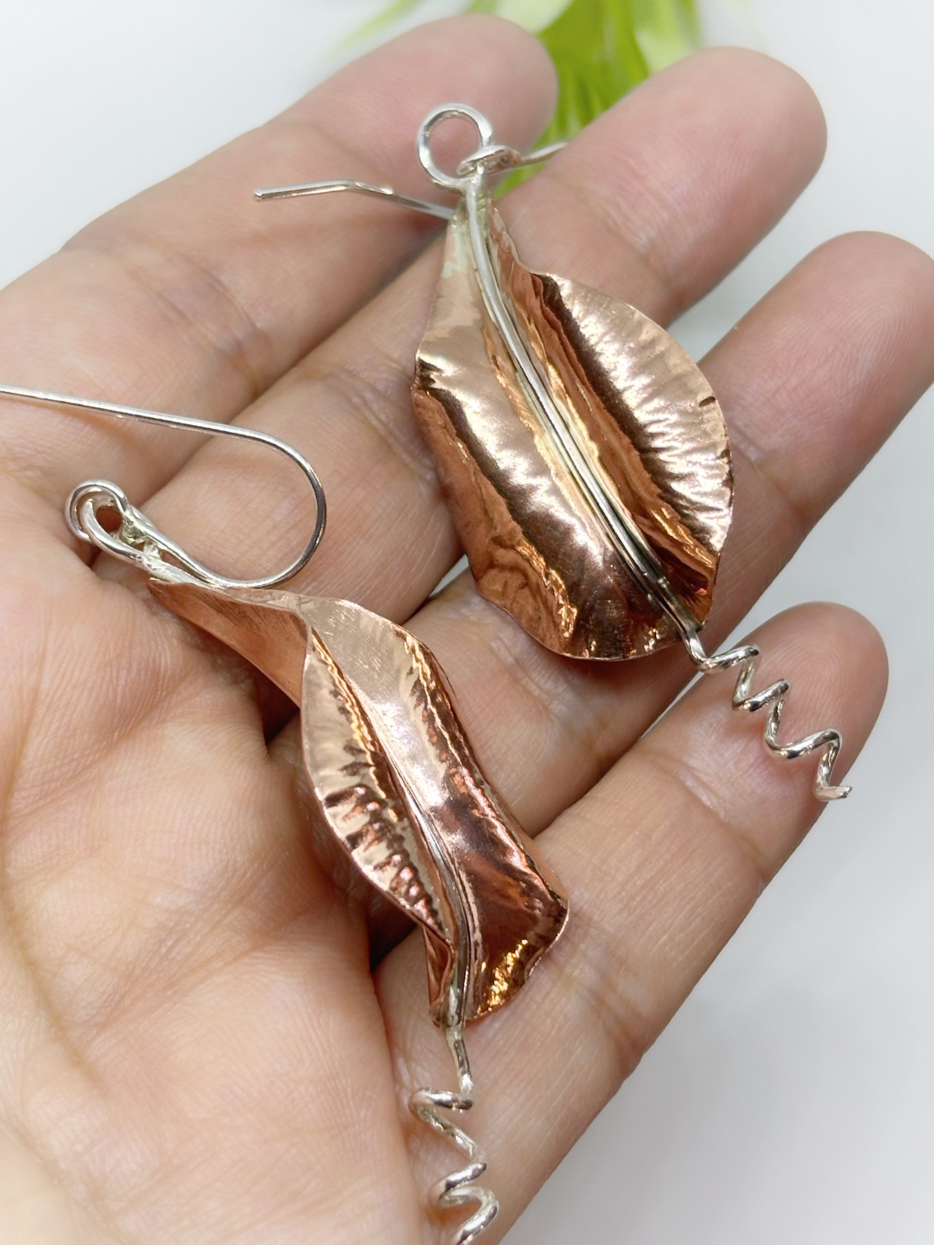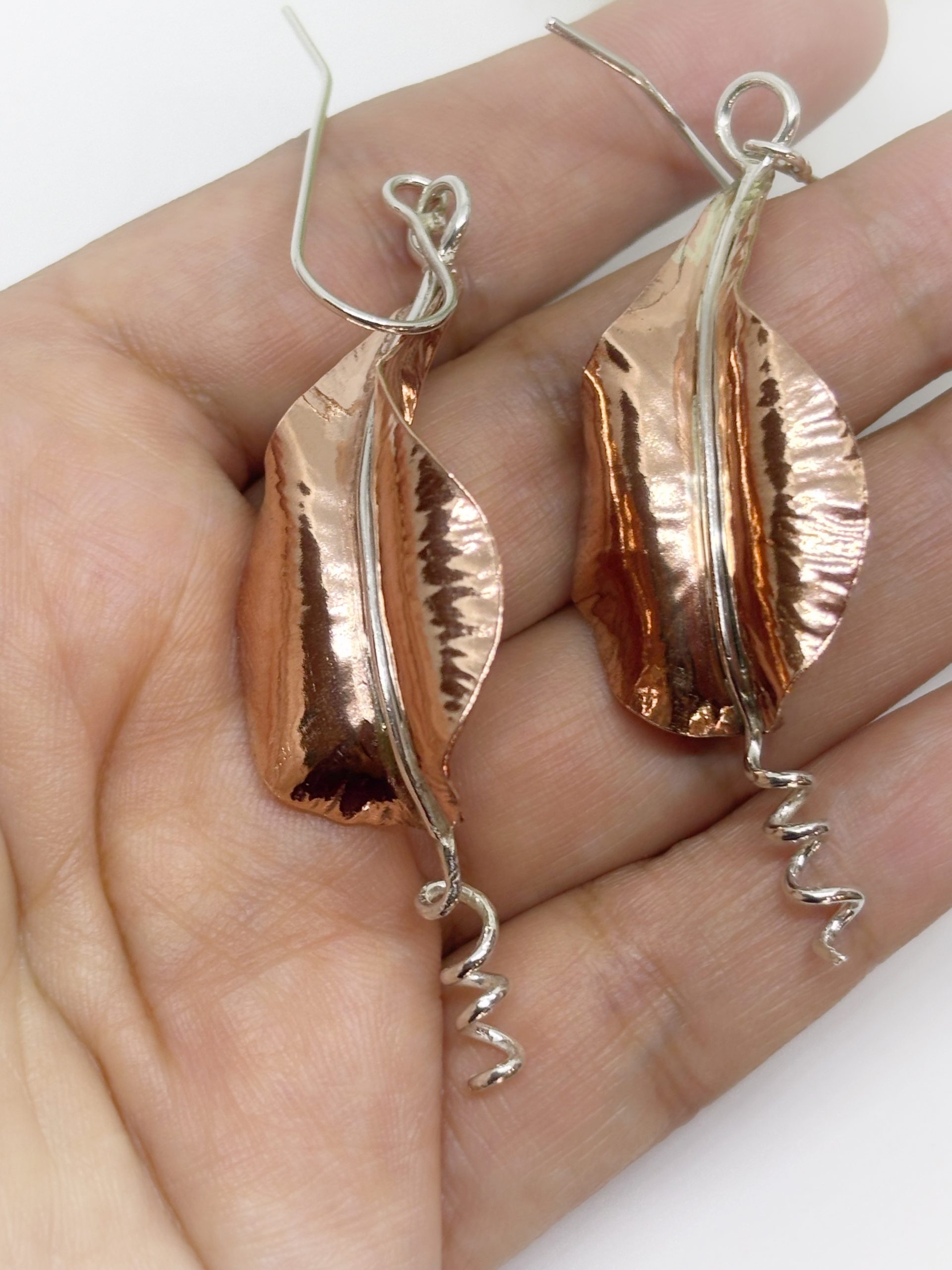 Aritos de cobre y plata 950, forjados a mano, golpe a golpe, piezas unicas.