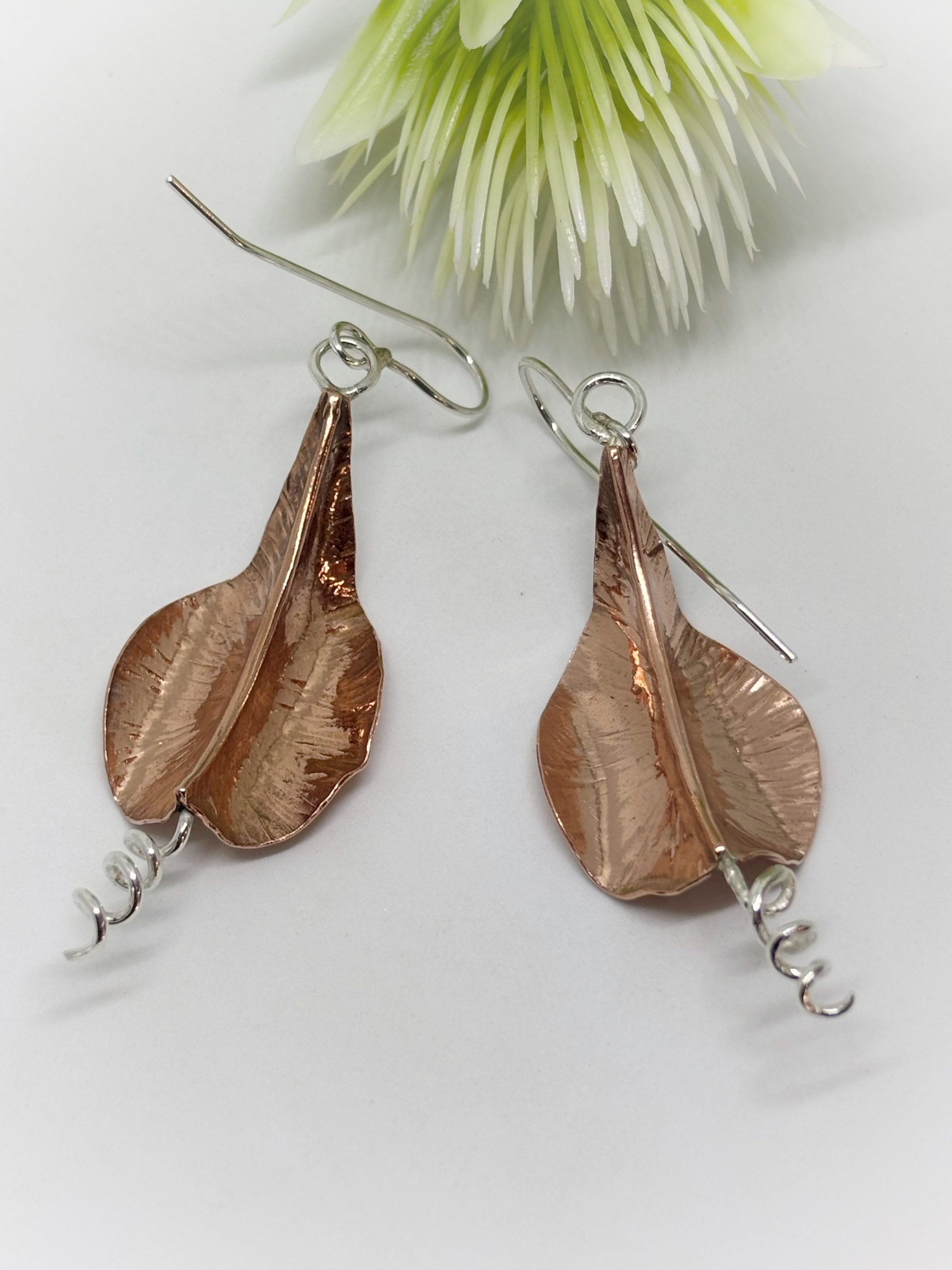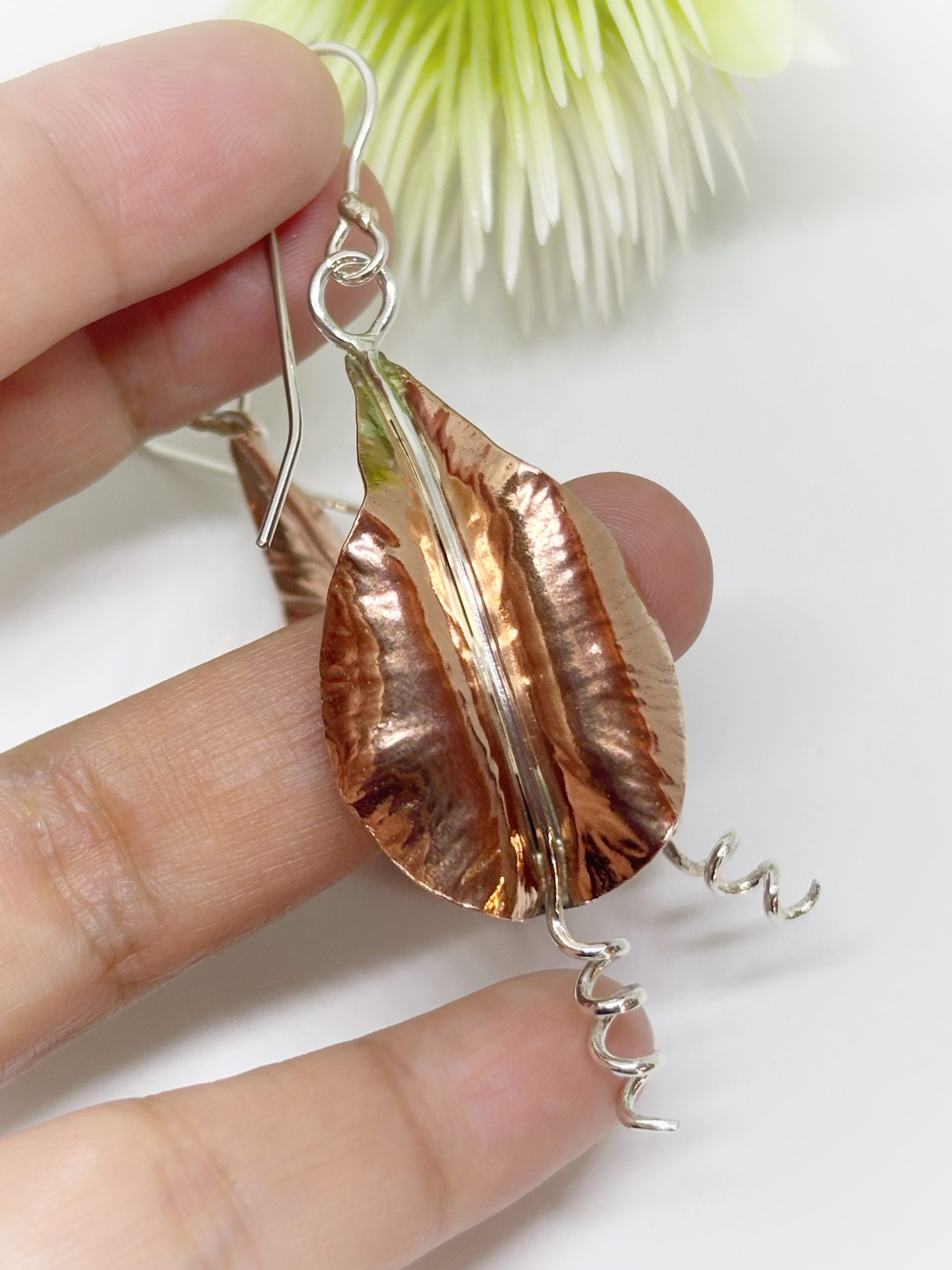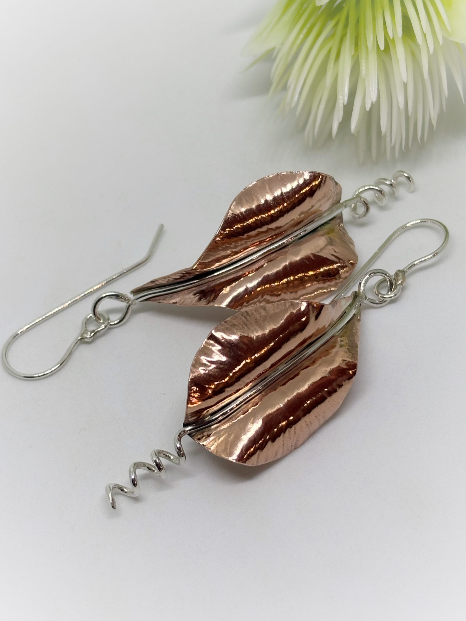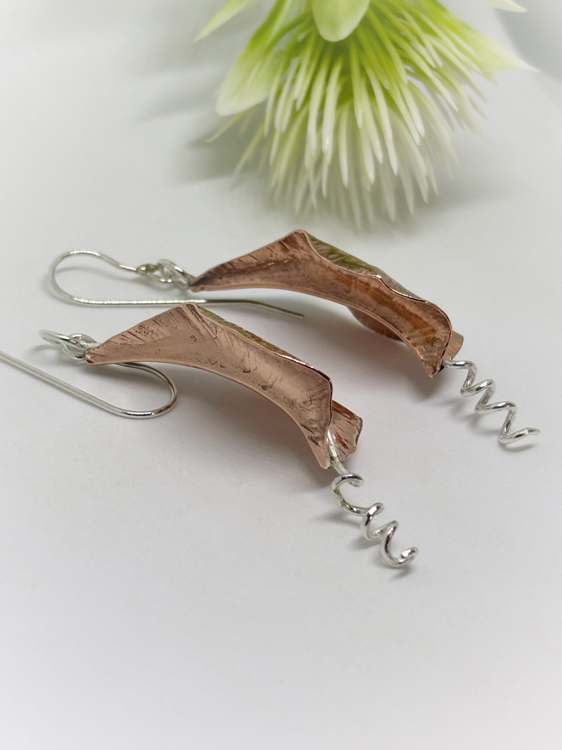 Aritos de cobre y plata 950, forjados a mano, golpe a golpe, piezas unicas.