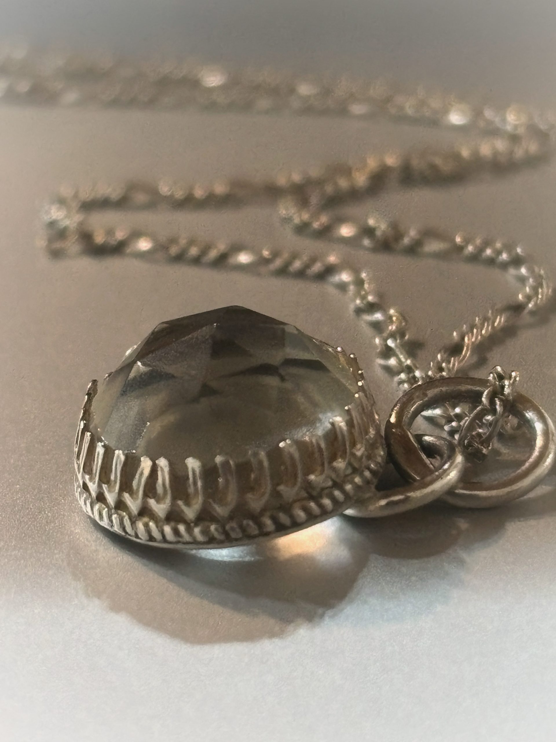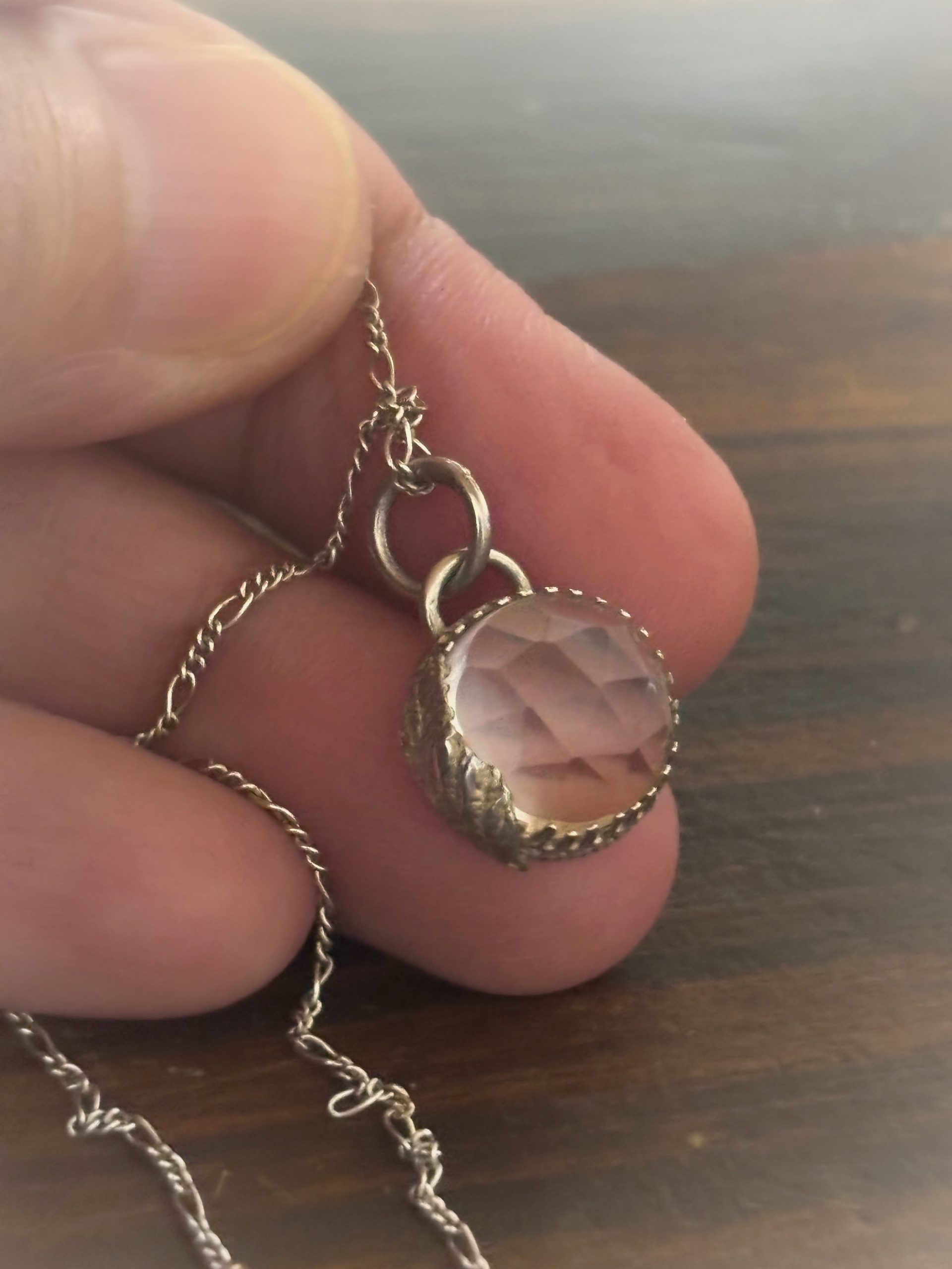 Mini colgante cuarzo cristal y plata 950, incluye cadena de 40 o de 45 cm, debes informar cuando hagas el pedido.