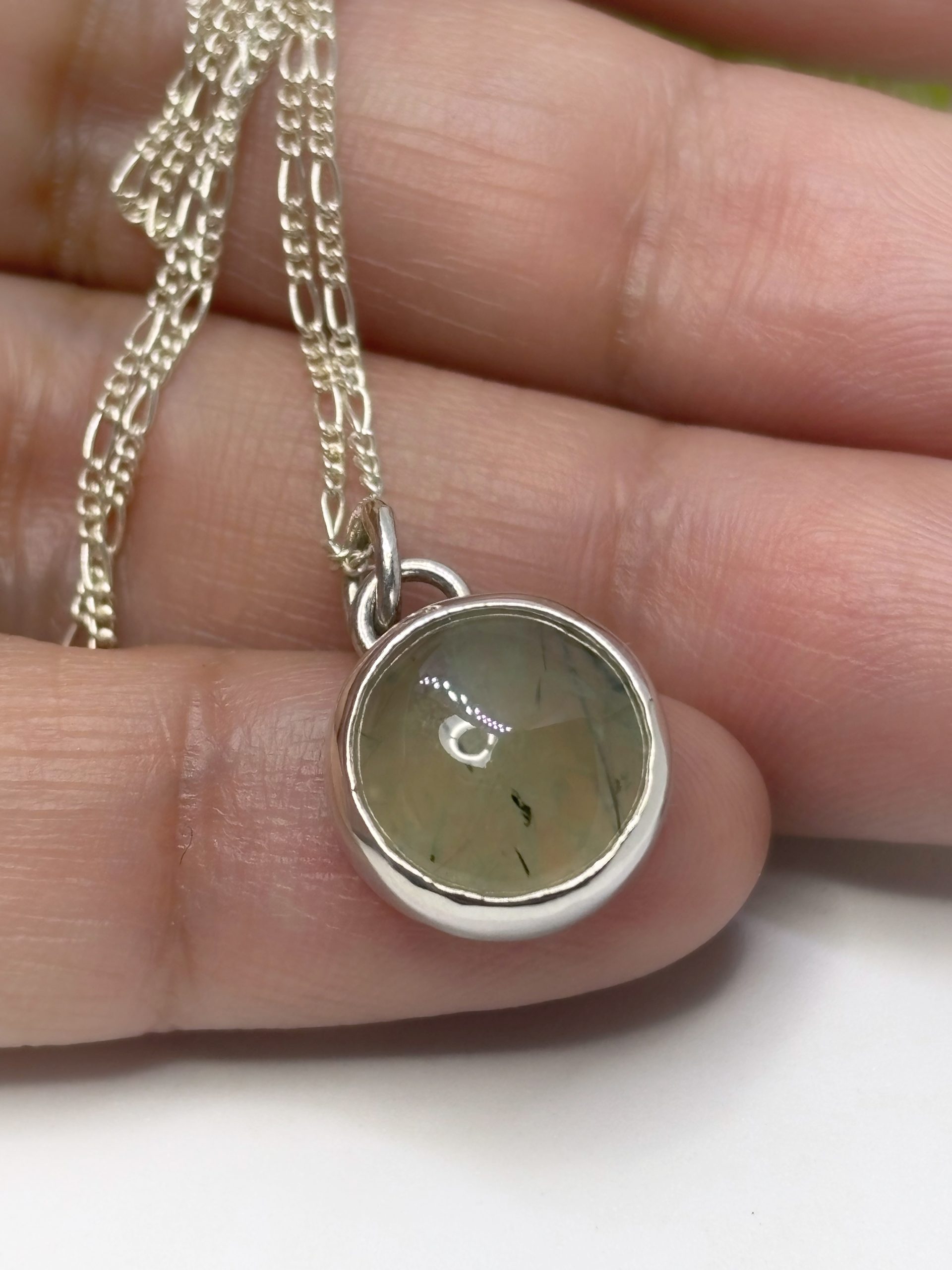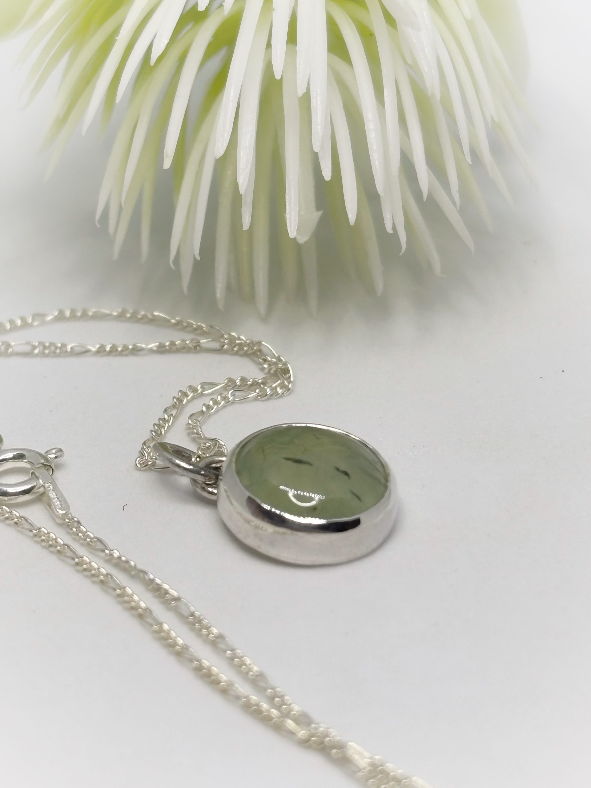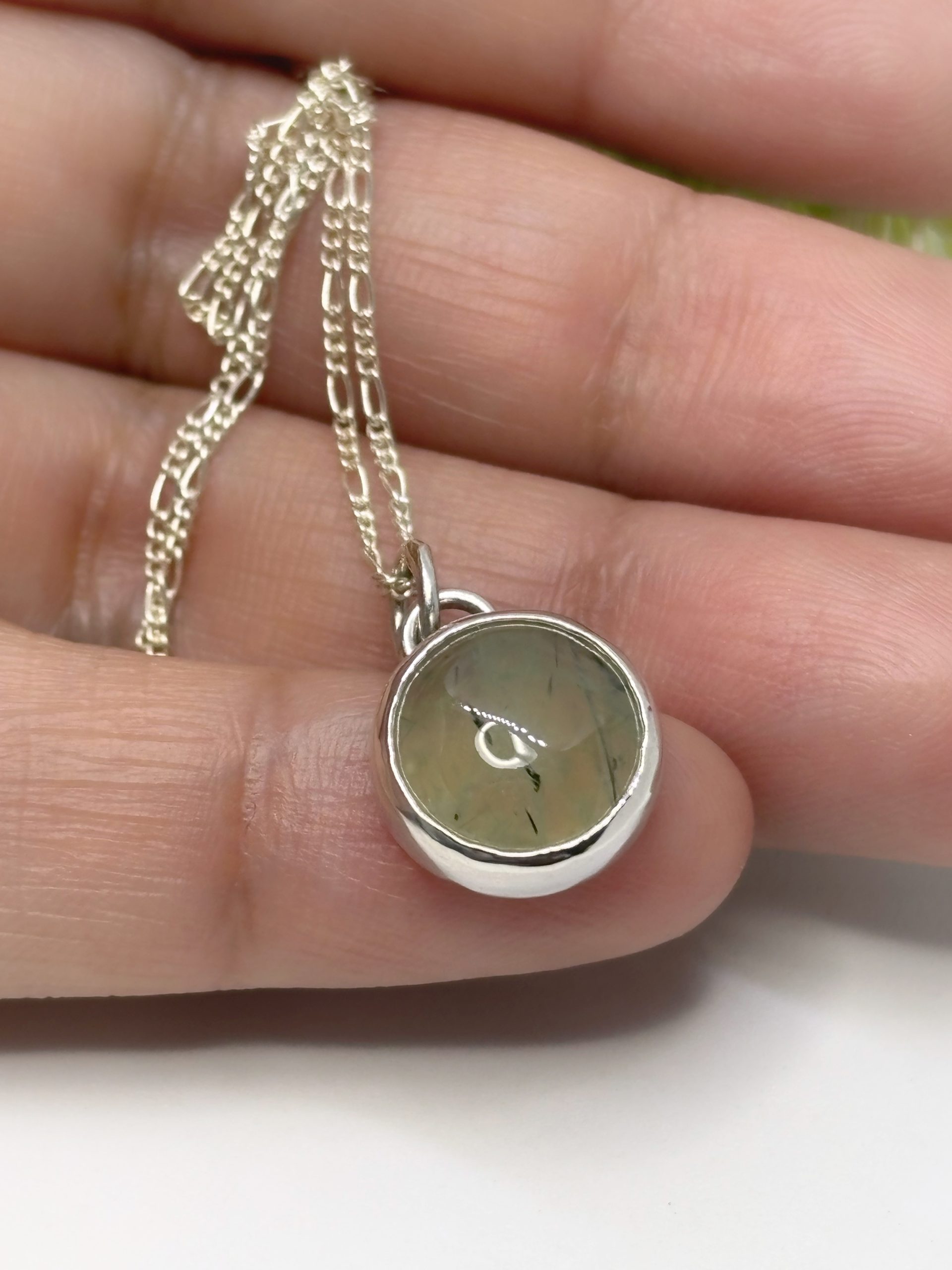 Mini colgante piedra Prhenita natural y plata 950,piedra engastada no pegada.