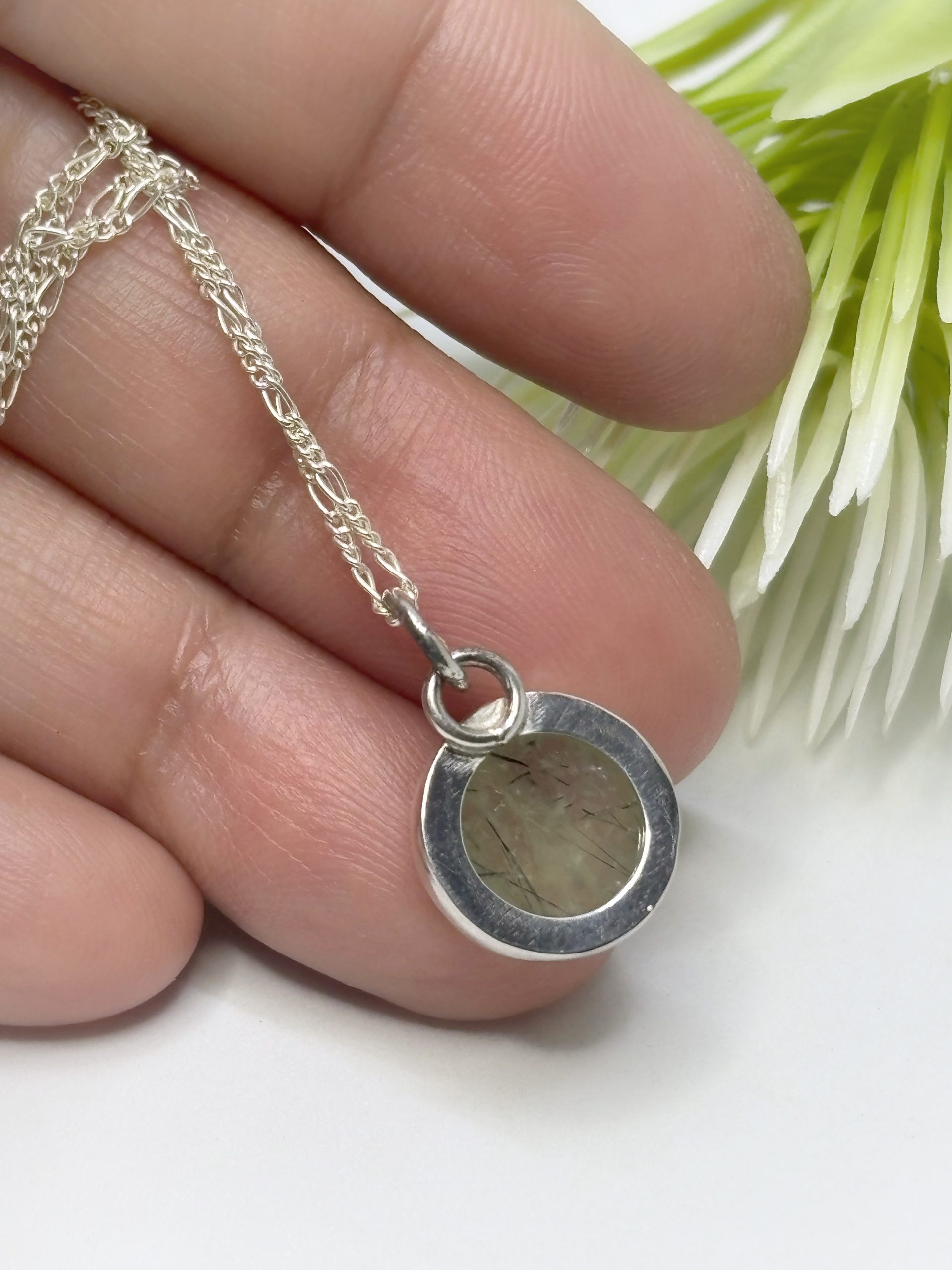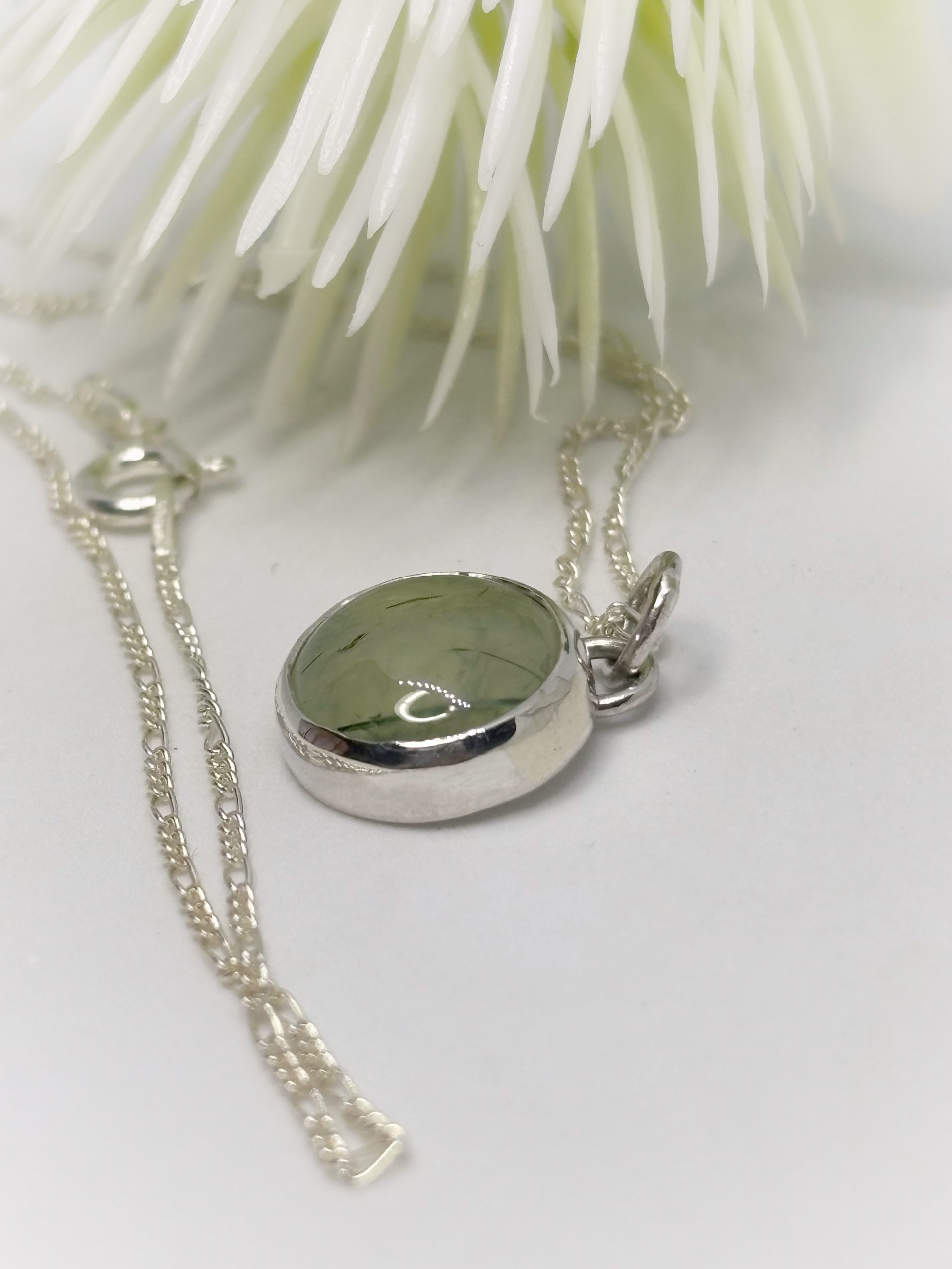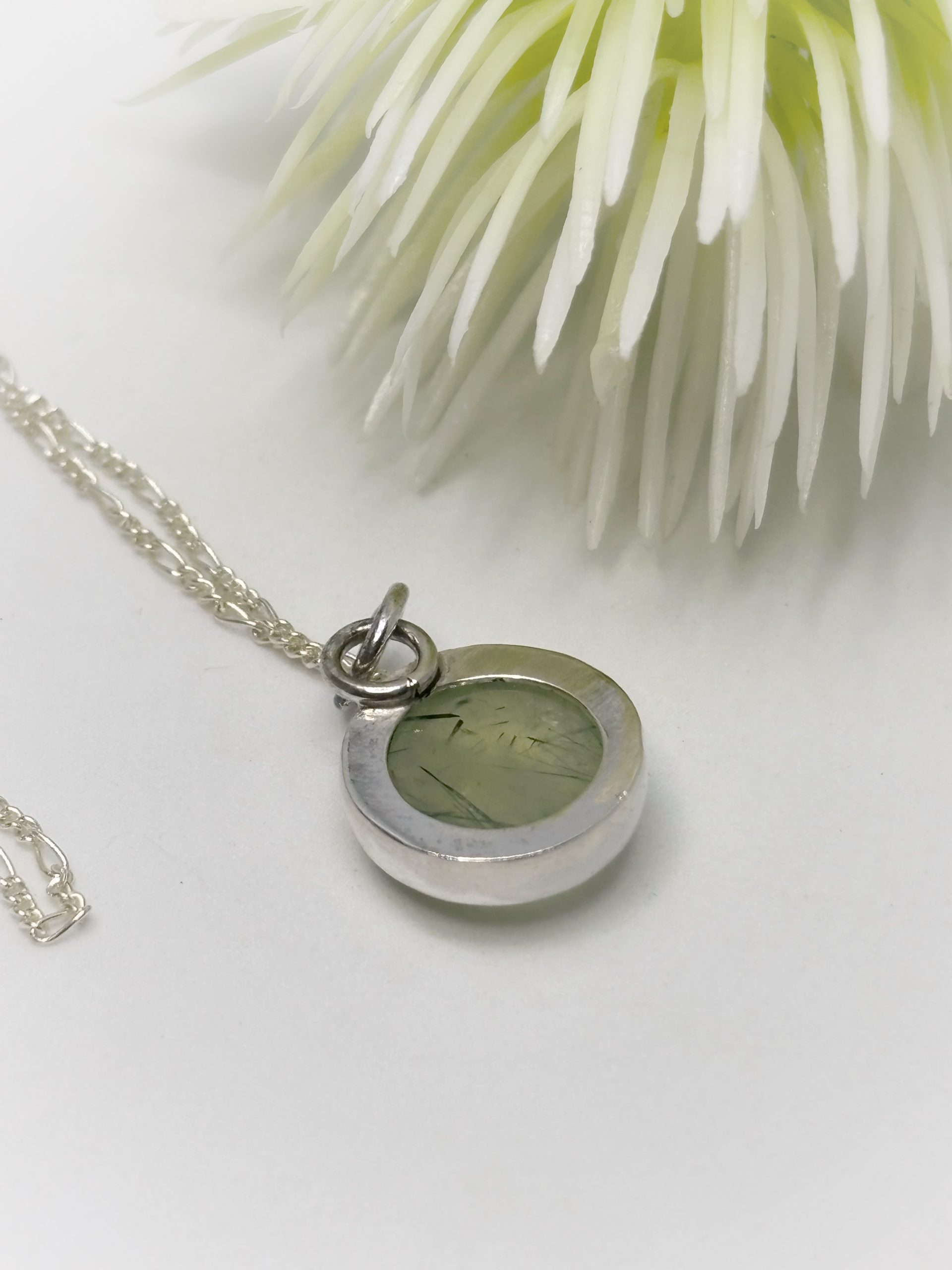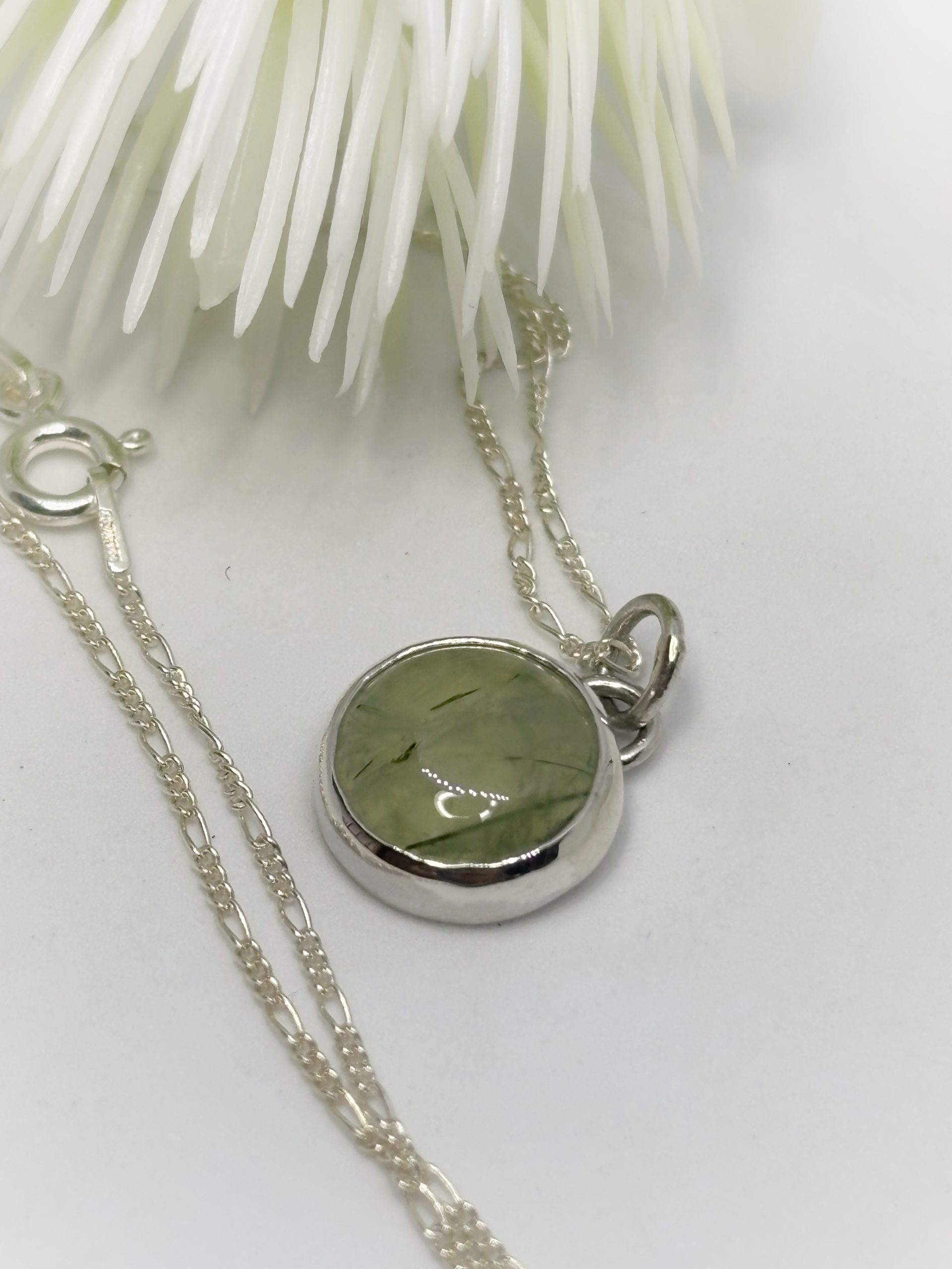 Mini colgante piedra Prhenita natural y plata 950,piedra engastada no pegada.